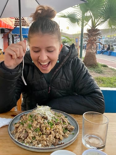Ich halte mich kurz: Ich war dreieinhalb Jahre Vegetarierin, bevor ich nach Peru gekommen bin. Jetzt bin ich es nicht mehr. Fünf oder sechs Wochen habe ich durchgehalten, dann aber aufgegeben. Allerdings muss ich an dieser Stelle anmerken, dass ich eine Avocado-Allergie habe und so ziemlich jede vegetarische Option, wenn es denn eine gibt, Avocado enthält beziehungsweise besser gesagt aus Avocado besteht. Das typische peruanische Essen ist sehr fleisch- und fischlastig – peruanische Vegetarier sind vermutlich nur schwer zu finden und es wird nur wenig Gemüse gegessen. Es ist auf gar keinen Fall so, dass man hier nicht reisen kann, ohne seinen vegetarischen Lebensstil aufgeben zu müssen – Reis oder Pommes lassen sich so gut wie immer finden. Allerdings wusste ich, dass ich hier für sechs Monate leben würde und nicht nur drei Wochen reisen vor mir hatte. Und für sechs Monate wollte ich einfach nicht immer das Gleiche essen. Außerdem genieße ich es tatsächlich, jetzt mehr von den typischen lokalen Gerichten probieren zu können und Peru auch auf diese Art und Weise kennenlernen zu können.