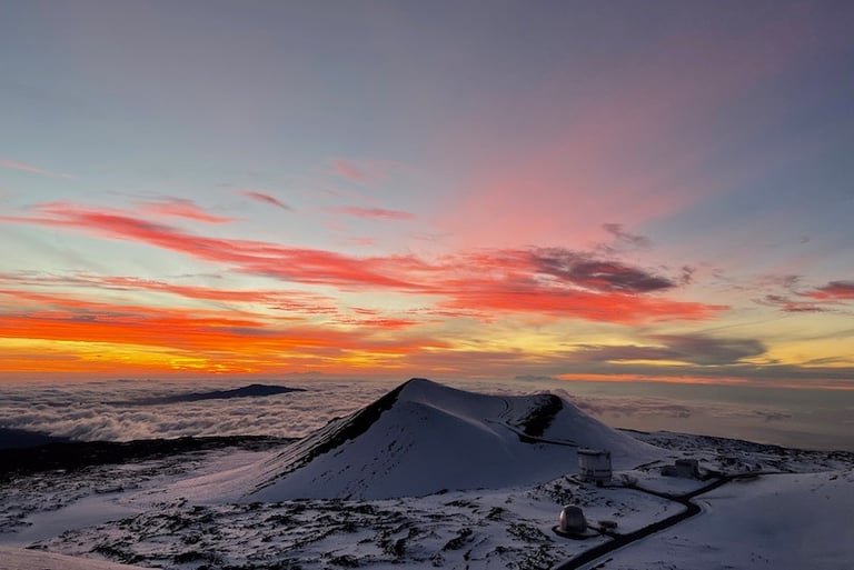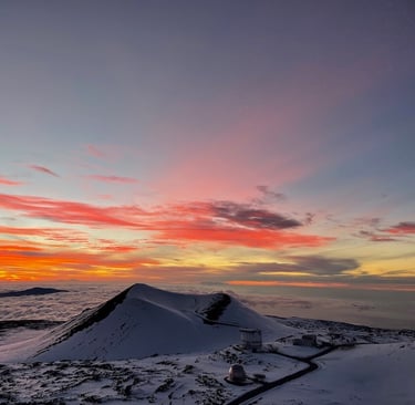 Egal wo ich hinschaue, mir offenbart sich eine unendliche Eis- und Schneelandschaft vor meinen Augen. Ich bin fasziniert. Ich schaue mich um und versuche zu realisieren, dass ich mich gerade mitten im pazifischen Ozean befinde. Auf über 4000 Metern Höhe. Über den Wolken. Im Schnee. Auf Hawai’i.