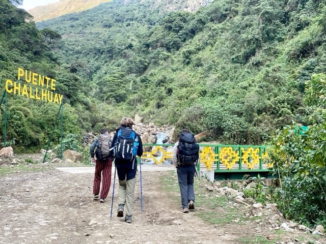 Weniger als einen Kilometer vor unserem Ziel haben wir auch den Rest unserer Gruppe wieder getroffen, da sie eine Badepause an der Stelle eingelegt hatten, wo ein Fluss/Bach den Weg kreuzt. Wieder vereint legten wir die letzten Meter zurück und kamen am Nachmittag endlich an unserem Hostel an – dem Lia B&B in Lucmabamba. Da wir ja noch nicht weit genug gelaufen waren, sind wir in einer kleinen Gruppe eine Stunde später nochmal zurück zum Fluss gegangen, um uns abzukühlen. Der Plan war gut – in der Theorie. Wir hätten uns eigentlich denken können, dass die Moskitos nicht nur gerne Wasser mögen, sondern vor allem auch die Dämmerung. Naja, als wir schon mal da waren, sind wir trotzdem kurz ins Wasser gegangen – einfach aus Prinzip. Da die Mückensituation aber echt extrem war und das Wasser sehr kalt, sind wir nach wenigen Minuten auch schon wieder raus und haben uns auf den Rückweg zum Hostel gemacht.