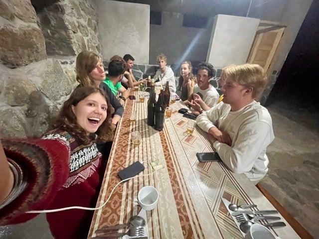 Und jetzt, zurück in Lima, muss ich noch ein paar Sätze hinzufügen: Was soll ich sagen, bei einem Bier ist es nicht geblieben – wir wurden immer mehr Leute, und auch die anderen Gäste waren in bester Trinklaune. Und so, völlig ungeplant, wurde nach verschiedenen (internationalen) Trinkspielen eine Flasche Bier nach der nächsten gekauft und geleert. Das hat mir mal wieder gezeigt – die spontansten Aktionen sind einfach die witzigsten. Wir haben einfach ausgeblendet, dass wir am nächsten Tag noch eine ordentliche Etappe (mit über 1000 Höhenmetern …) vor uns hatten. Das mit den 1000 Höhenmetern habe ich aber sowieso erst am nächsten Tag erfahren, daher war es sowieso egal, haha. Aber dadurch, dass es hier so früh dunkel wird, haben wir das erste Bier auch schon um 17 Uhr aufgemacht und konnten daher um 21 Uhr besten Gewissens den Abend beenden und ins Bett fallen. Ich habe so viel gelacht an diesem Abend – ich könnte versuchen, den Verlauf des Abends inklusive mancher Anekdoten zu schildern, aber das würde dem Moment einfach nicht gerecht werden.