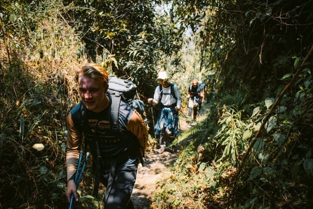 Heute stand eine Strecke der etwas anderen Art an: Es ging nämlich nicht von Anfang an ohne jegliche Unterbrechung nur bergauf und dann wieder bergab, sondern der Trail war deutlich abwechslungsreicher als an den zwei Tagen zuvor. Es versteht sich von selbst, dass „abwechslungsreich“ auf das Streckenprofil und nicht auf die Ausblicke und die Natur bezogen ist. Viel abwechslungsreicher als am Vortag, als wir sowohl vor schneebedeckten 6000ern standen als auch durch urwaldähnliche Vegetation wanderten, ging es js wirklich kaum.