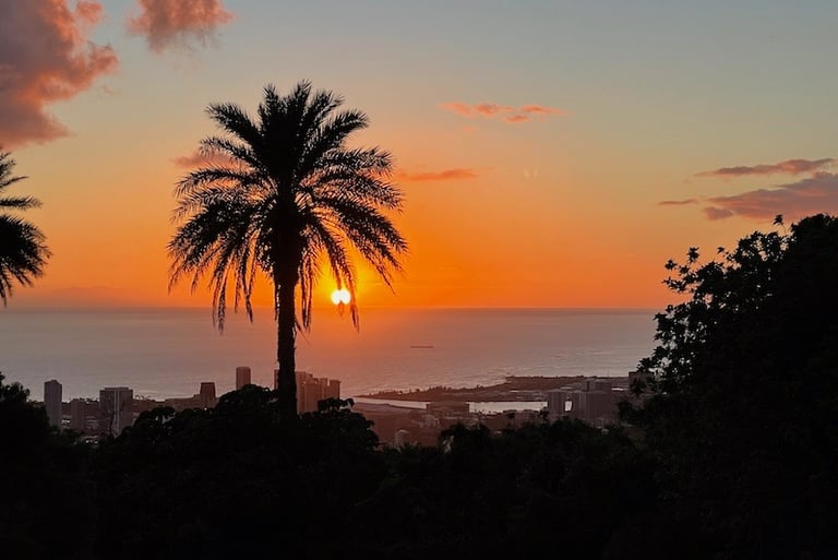 Einen Sonnenuntergang auf dem Tantalus Lookout – den sollte man sich nicht entgehen lassen. Man folgt dem Tantalus Drive mit dem Auto nach oben, bis es eine Abzweigung nach links gibt. Diesen fährt man, bis es einfach nicht mehr weiter geht. Der Parkplatz ist meistens relativ voll, gegebenenfalls braucht man etwas Geduld. Von hier oben hat man einen der besten Blicke über die Stadt und sieht zusätzlich noch, wie die Sonne zwischen zwei Palmen ins Meer eintaucht.